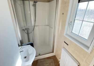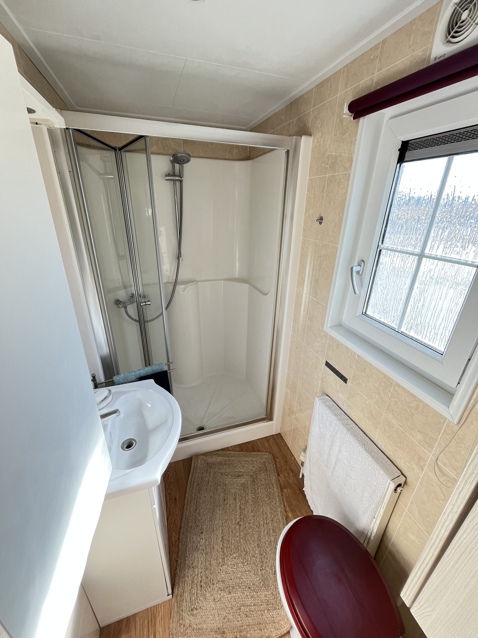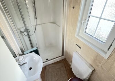 – ŁAZIENKA: umywalka z szafką, prysznic z dużym brodzikiem, WC, piec do centralnego ogrzewania