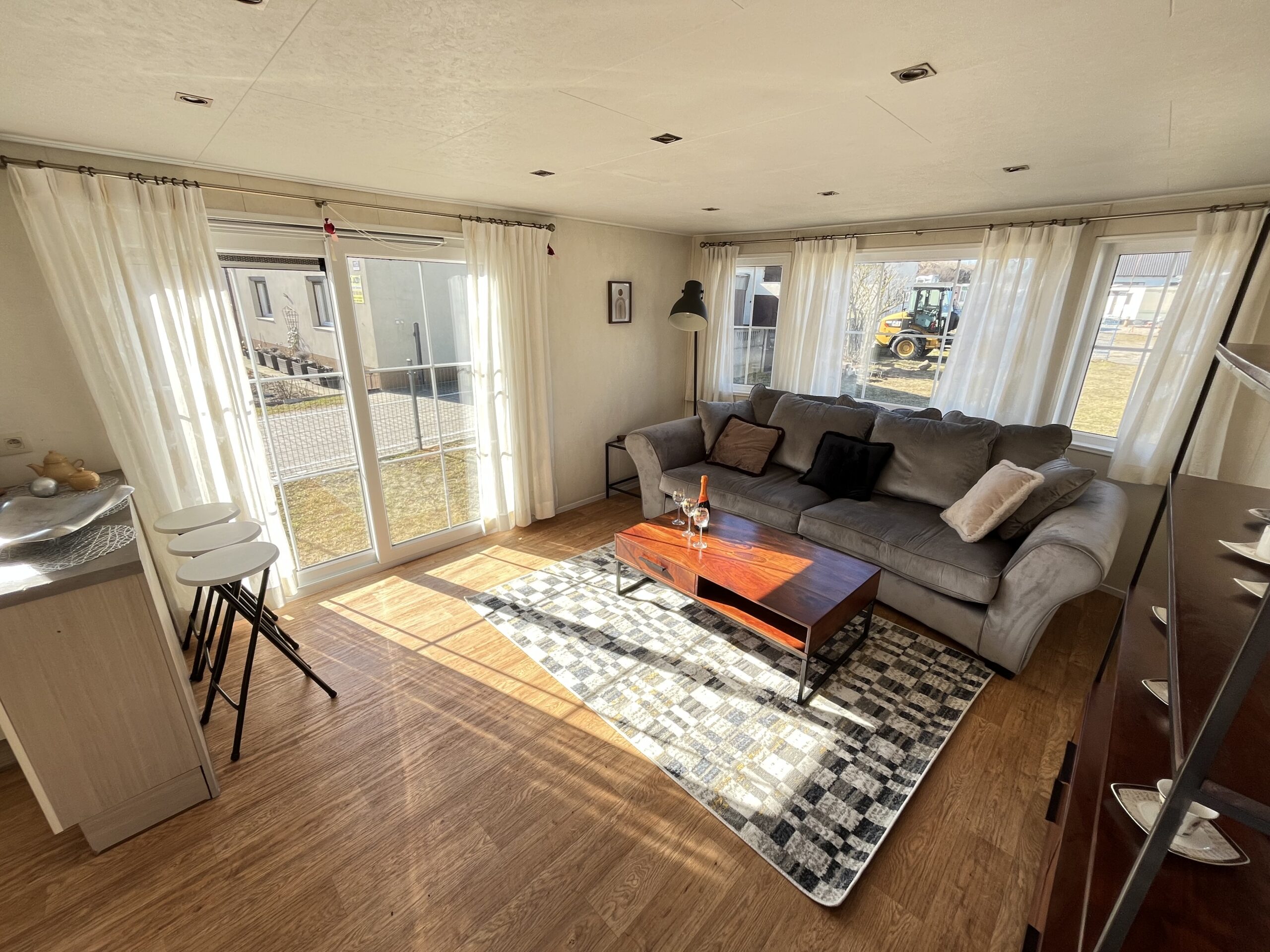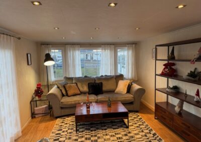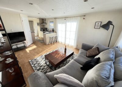 – SALON: piękna, duża, wygodna kanapa, stolik, meble, telewizor, wyjście z salonu na zewnątrz- duże rozsuwane drzwi