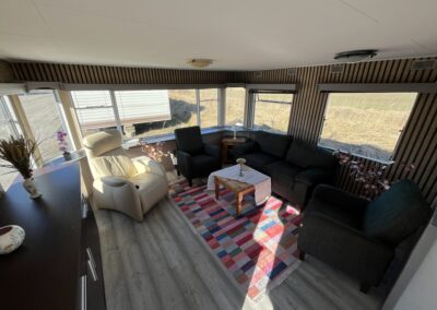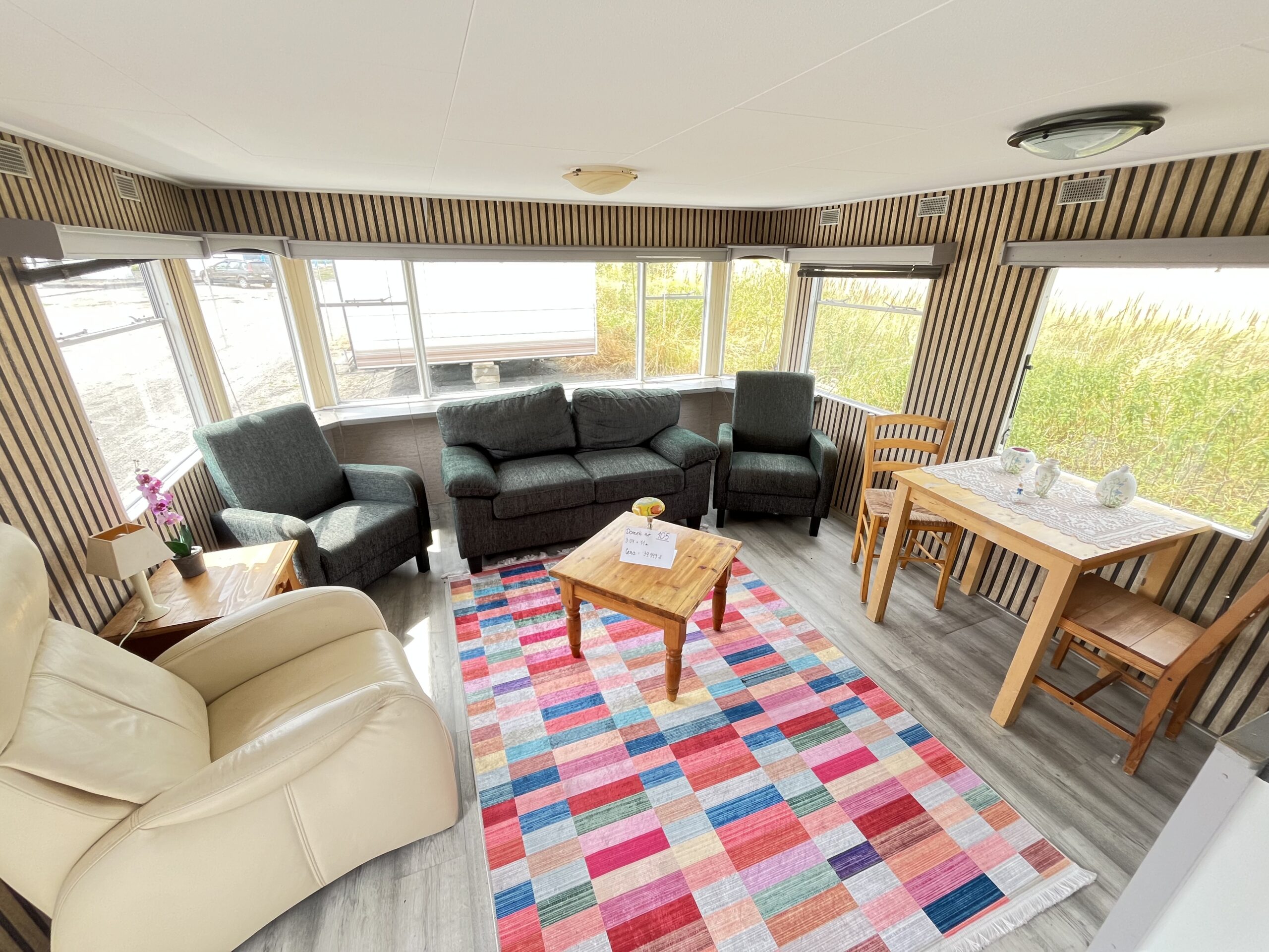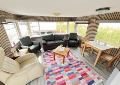 – SALON : stolik kawowy, szafka do przechowywania, wygodna kanapa, dwa fotele, duży stół, dwa krzesła