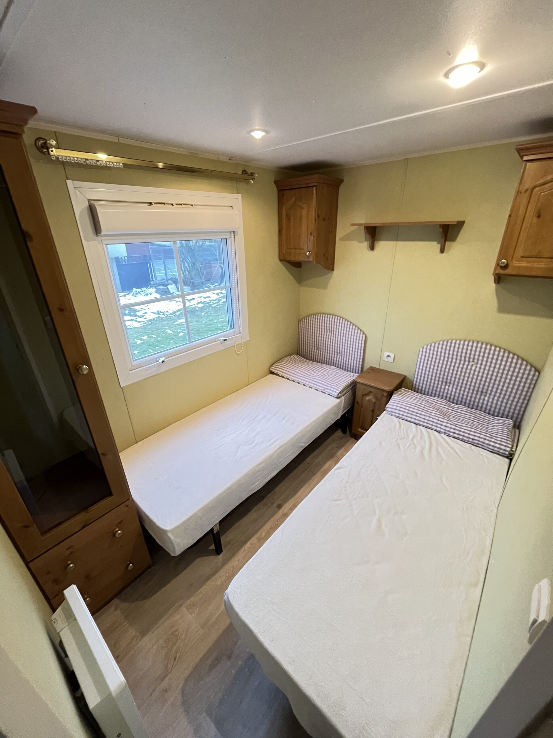 – POKÓJ II: dwa pojedyncze łóżka z materacami, szafki, kaloryfer elektryczny, roleta zewnętrzna w oknie