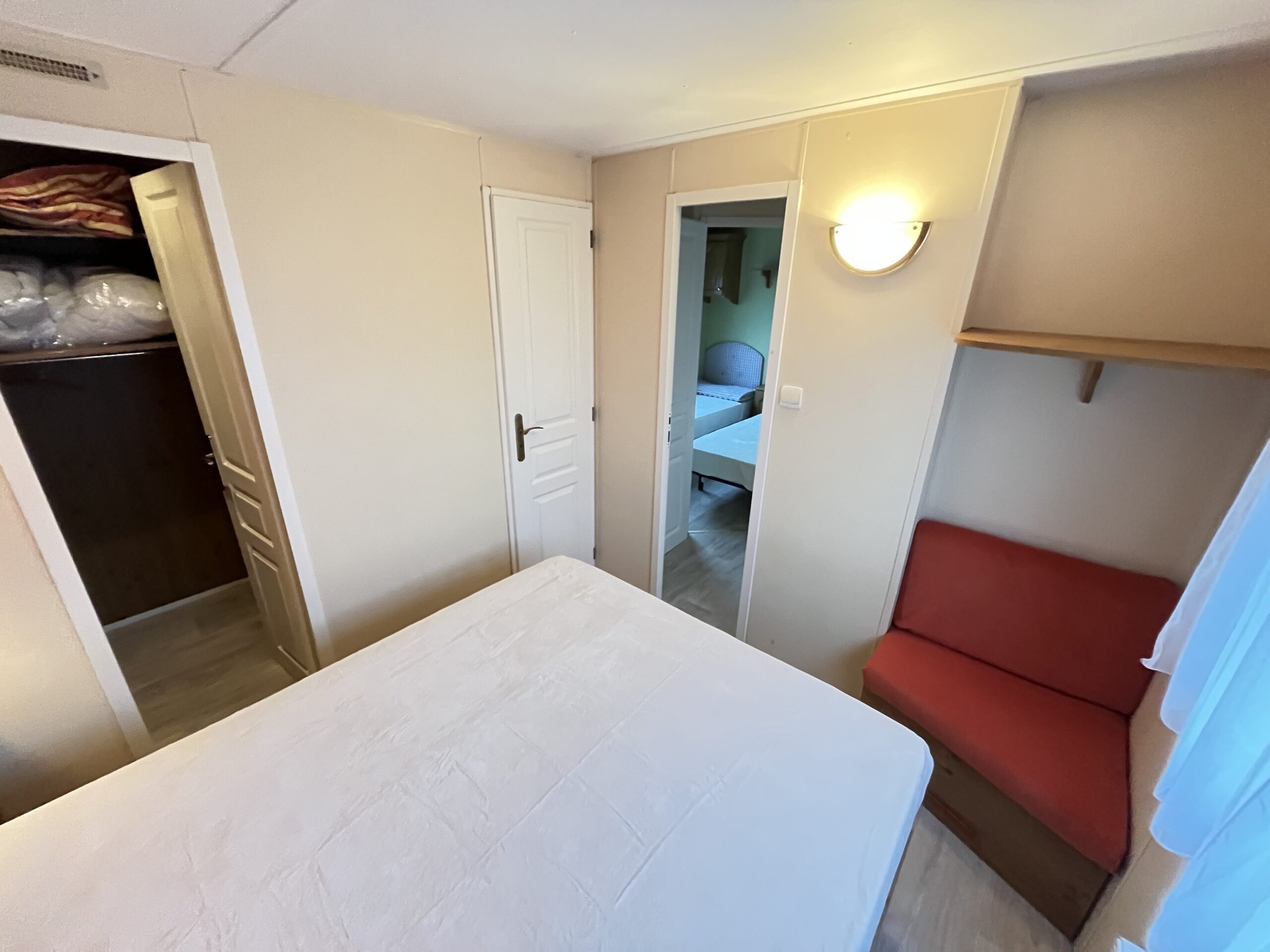 – POKÓJ I : szafki, duże łóżko z materacem, garderoba, kaloryfer elektryczny, roleta zewnętrzna w oknie