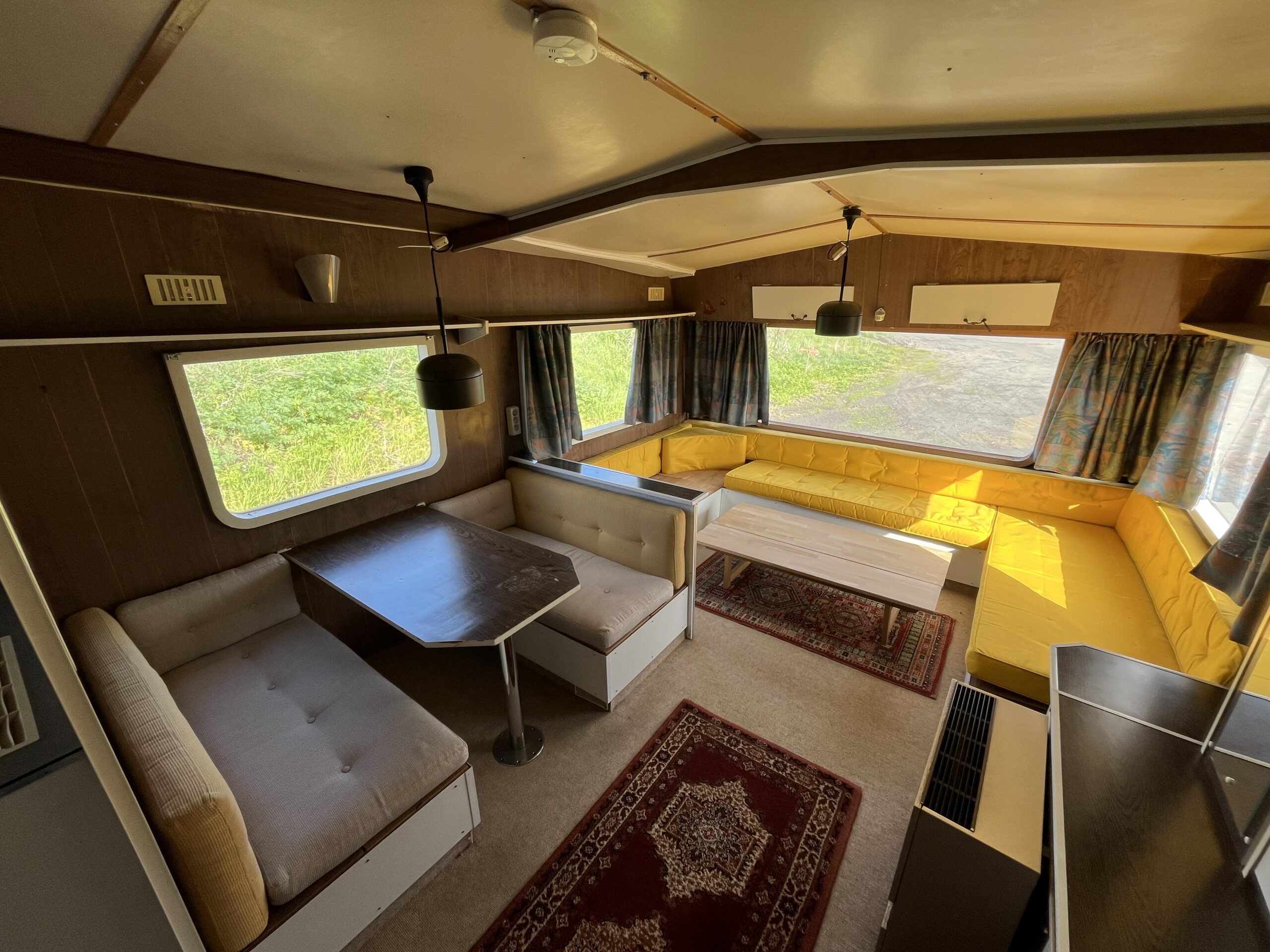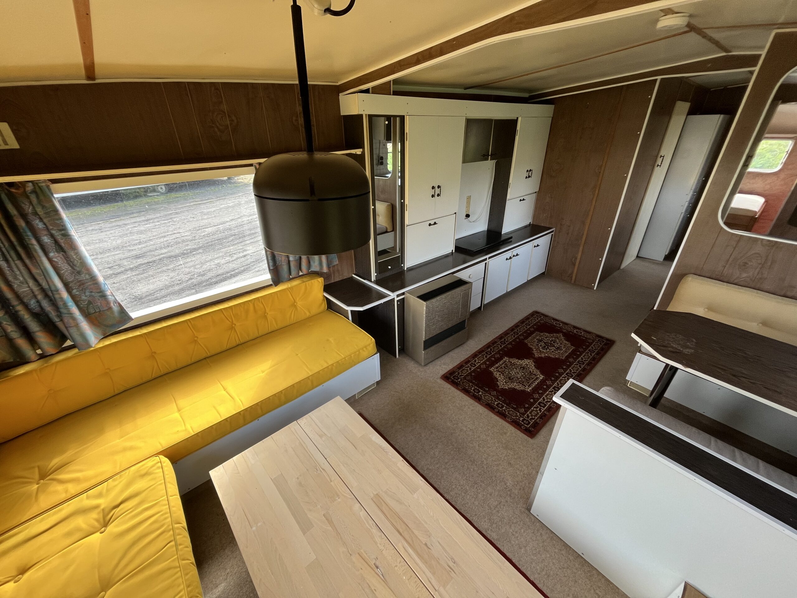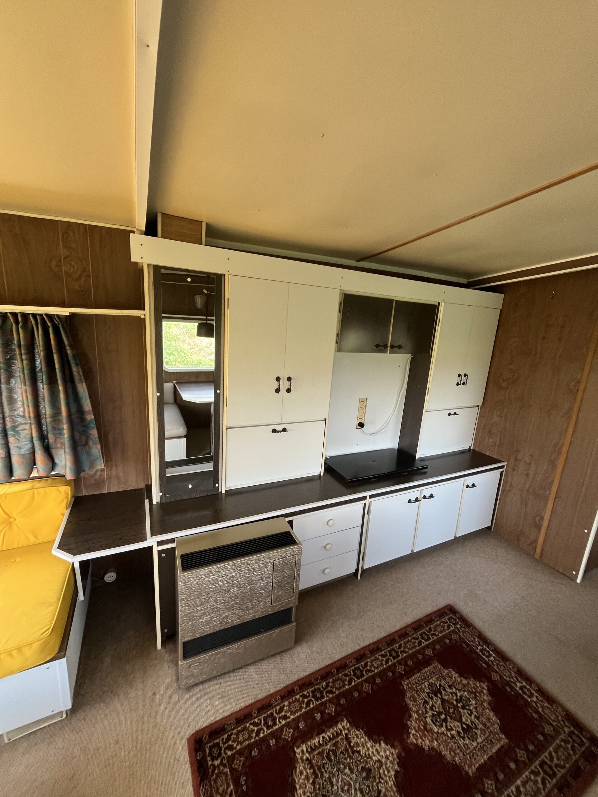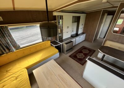 – SALON : duża kanapa narożnikowa, stolik, szafki , piecyk gazowy do ogrzewania