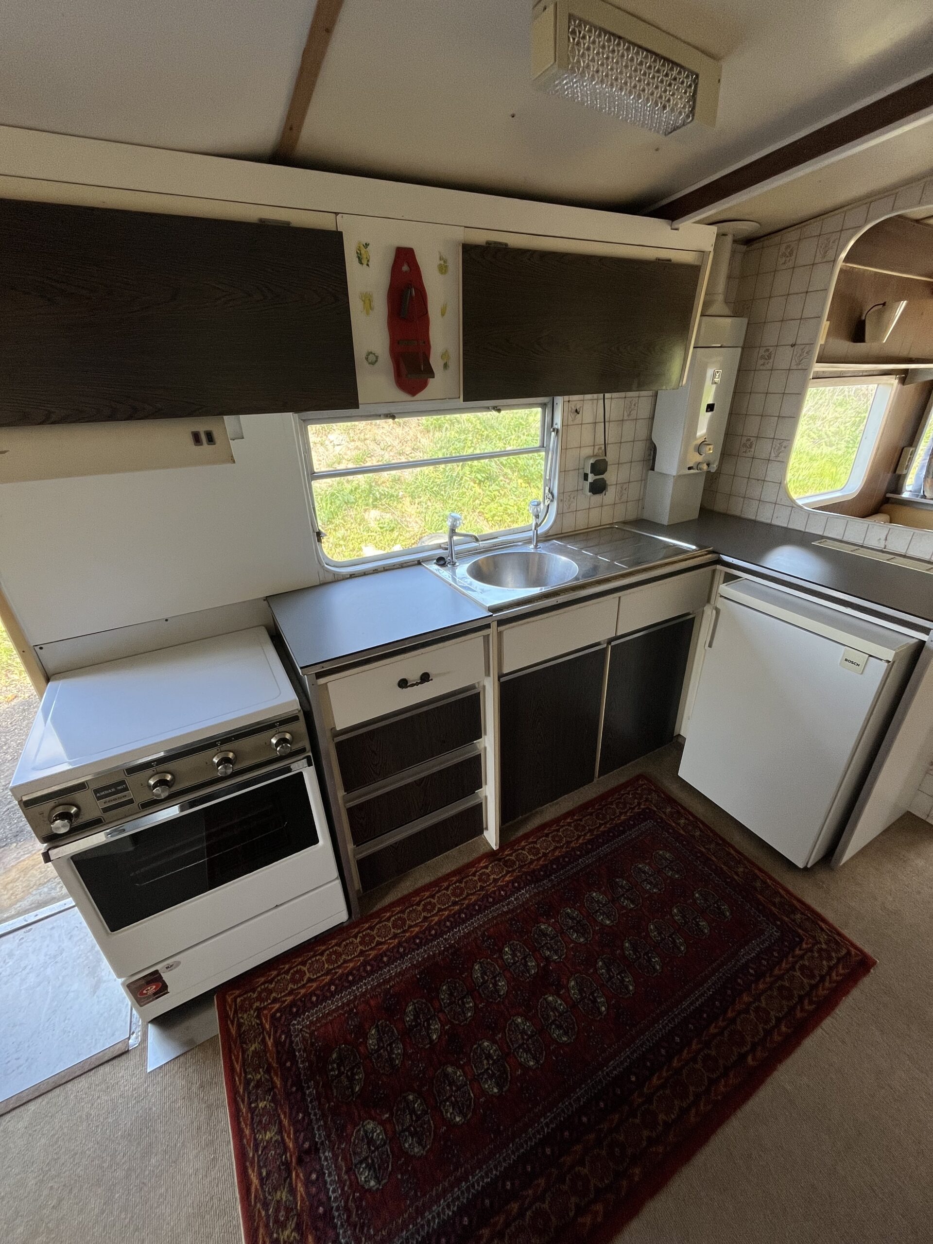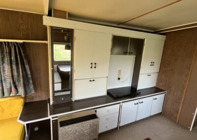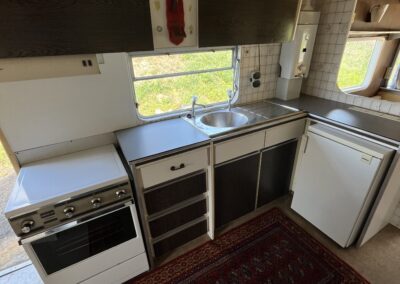 – KUCHNIA: szafki do przechowywania, zlew jednokomorowy z ociekaczem, gazówka trzypalnikowa, piekarnik, lodówka, piecyk do podgrzewania wody