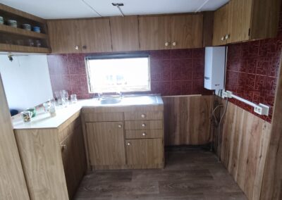 -KUCHNIA: przy salonie, szafki do przechowywania, zlew, lodówka, gazówka czteropalnikowa, piekarniczek