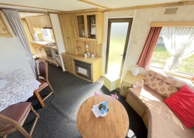 – SALON : duża kanapa, stolik kawowy, meble, piecyk do ogrzewania, dodatkowe wyjście na zewnątrz