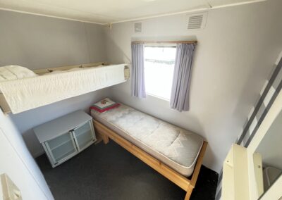 – POKÓJ II : szafa do przechowywania, dwa pojedyncze łóżka (jedno wiszące)