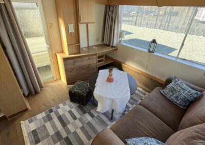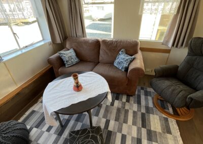 SALON : kanapa, stolik, meble, fotel obrotowy, drugie wyjście na zewnątrz