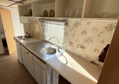 KUCHNIA: szafki do przechowywania, zlew, lodówka, gazówka czteropalnikowa