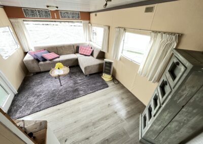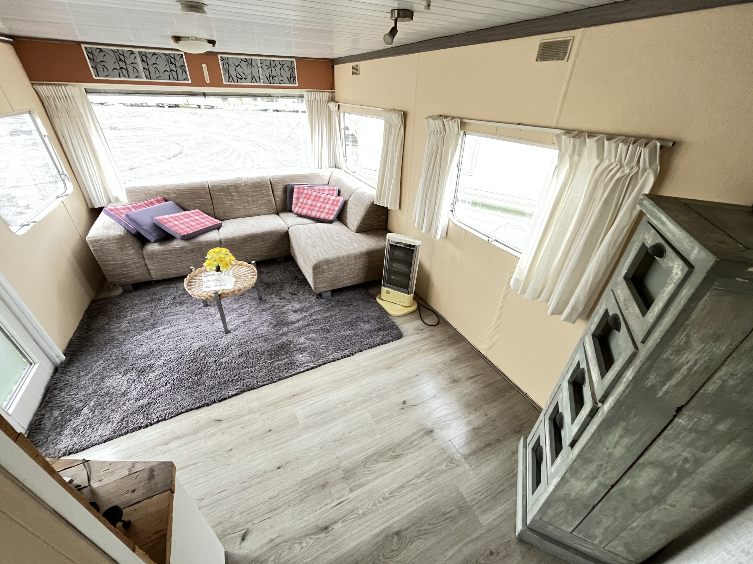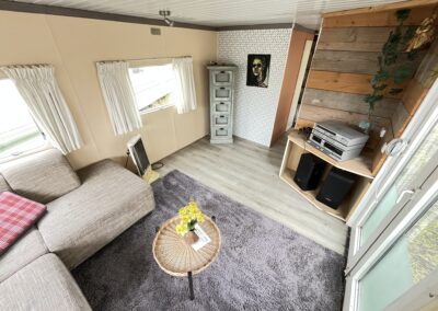– SALON: wypoczynek narożnikowy, stolik kawowy, fotel, szafki, dodatkowe wyjście na zewnątrz
