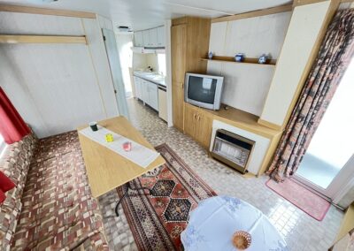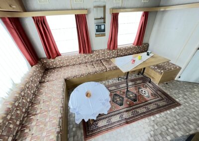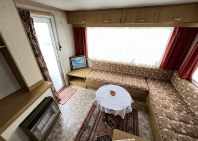 – SALON: Wygodna kanapa narożnikowa, stolik, piecyk gazowy do ogrzewania, meble, wyjście z salonu na zewnątrz