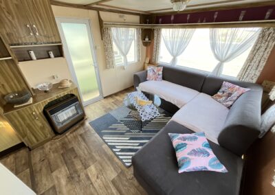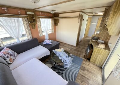 – SALON: stolik kawowy, szafki do przechowywania, piecyk do ogrzewania, wygodna kanapa narożnikowa, dodatkowe wyjście na zewnątrz