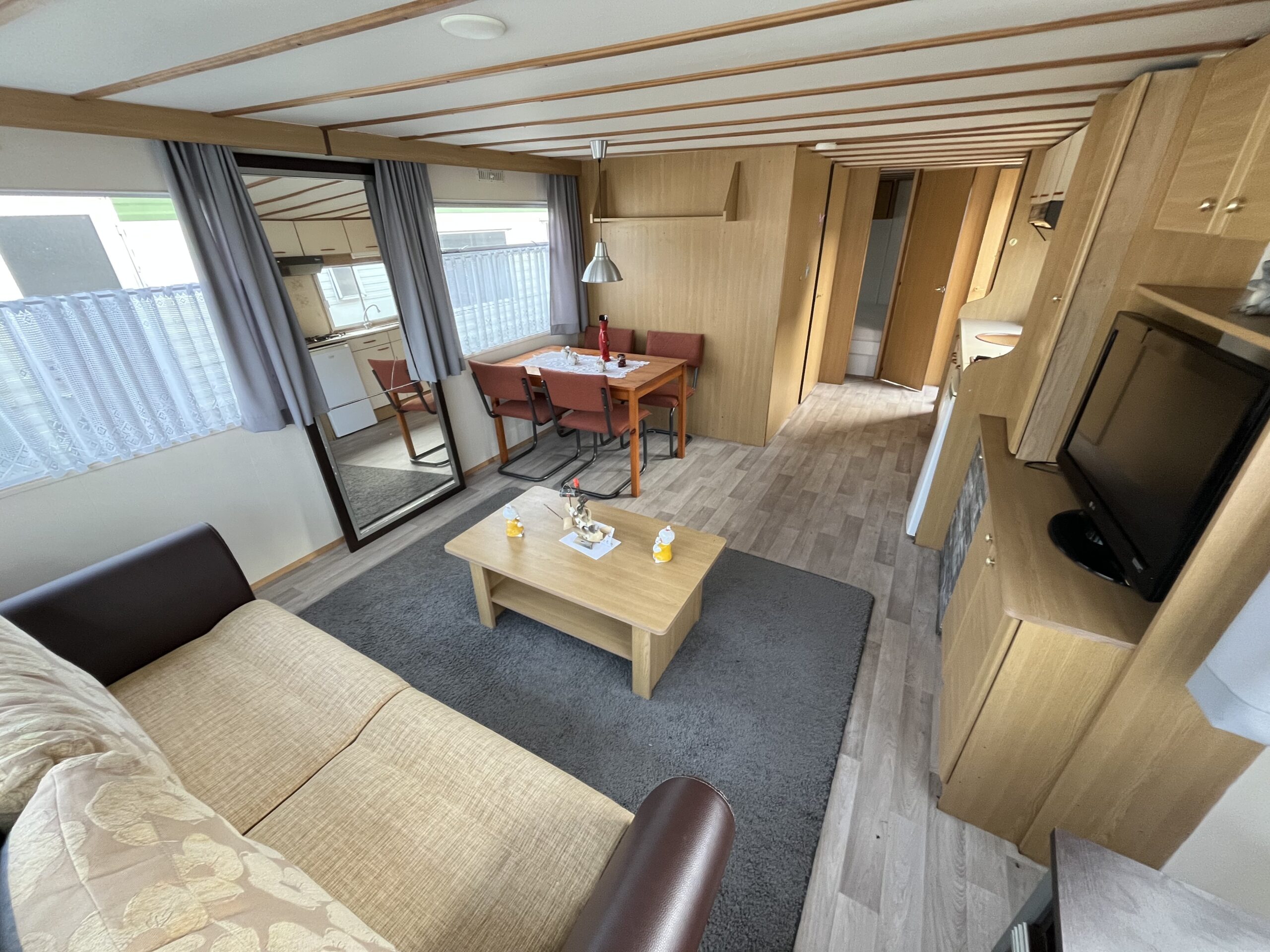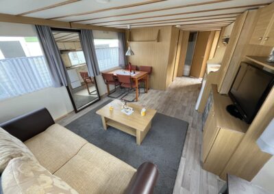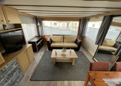 – SALON: wygodna kanapa – w środku łóżko polowe, stolik kawowy, szafki do przechowywania, duże lustro, telewizor, stół z czterema krzesłami